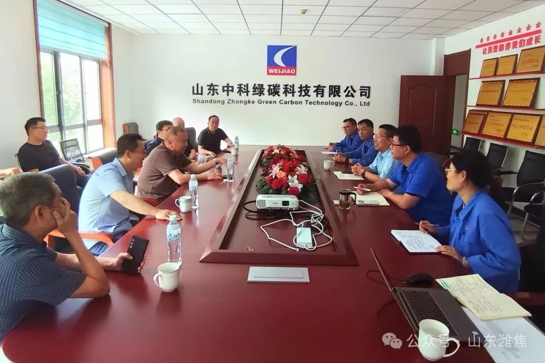 5 月 22 日下午,清華大學化學工程系庹新團隊到訪中科綠碳公司,圍繞中試合作展開交流。薛城開發區主任田鋒、集團公司總經理助理王玉增、公司總經理趙偉明等陪同。